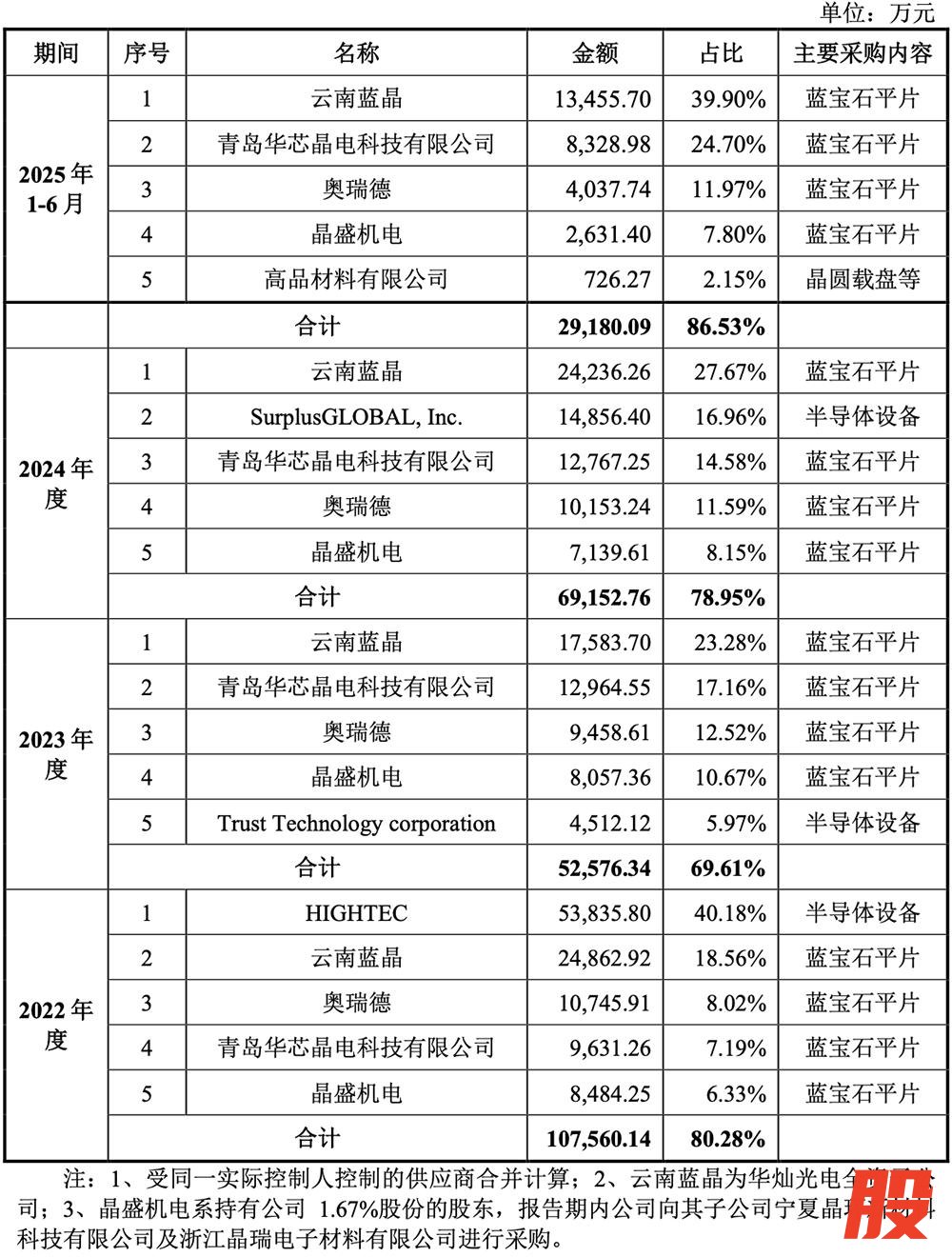 同期,该公司向前五大原材料供应商的采购金额占采购总额比例分别为80.28%、69.61%、78.95%、86.53%。