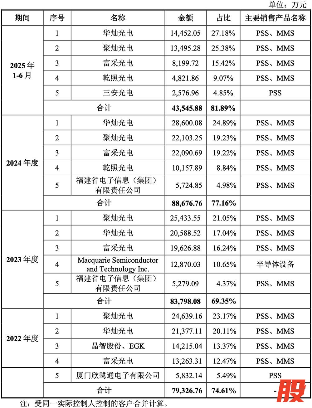 2022年、2023年、2024年、2025年1-6月,中图科技向前五大客户的销售收入占营收比例分别为74.61%、69.35%、77.16%、81.89%。